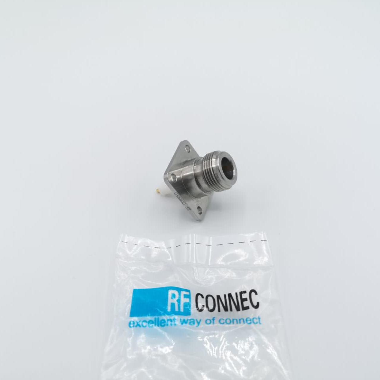 کانکتور N-TYPE مادگی پنلی چهار سوراخه تفلون بلند مستقیم با مغزی(پین) استاندارد می باشد.