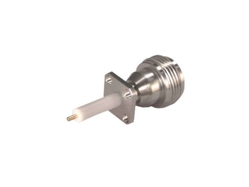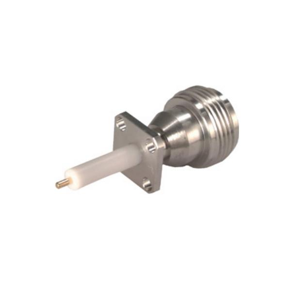 کانکتور N-TYPE مادگی پنلی چهار سوراخه تفلون بلند مستقیم هوبر (فلنچ SMA) با مغزی(پین) استاندارد می باشد.