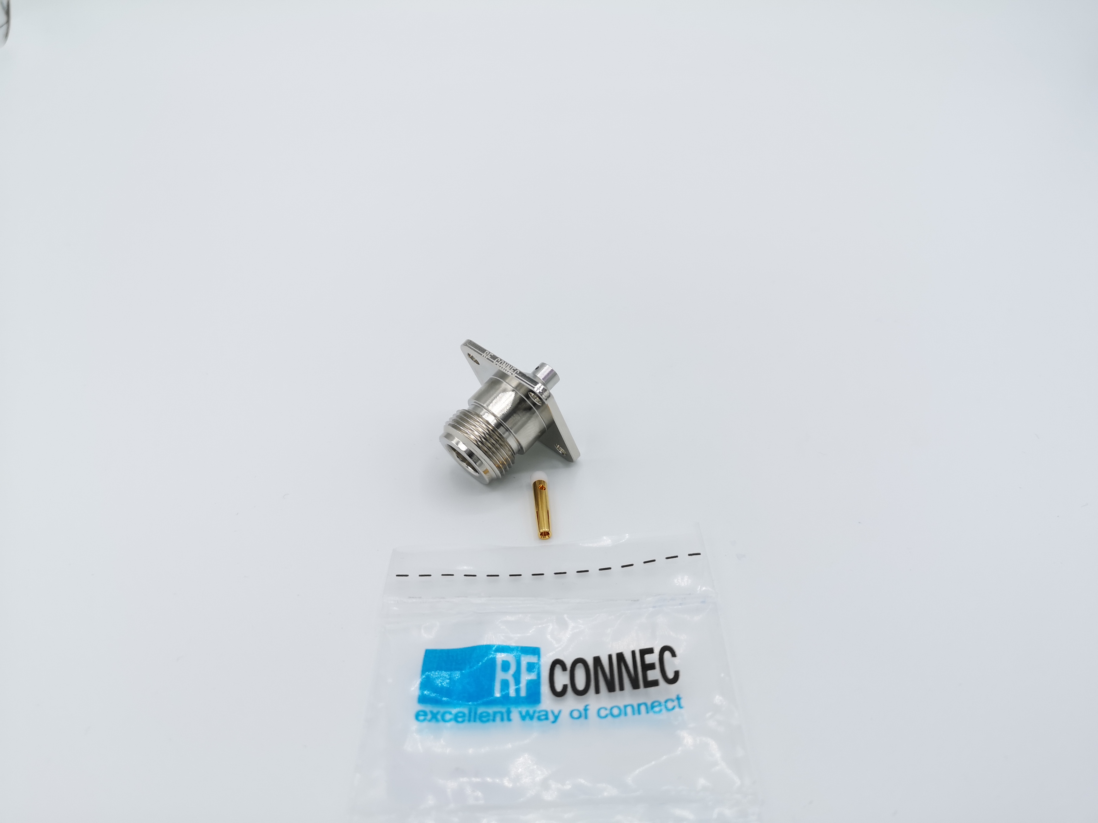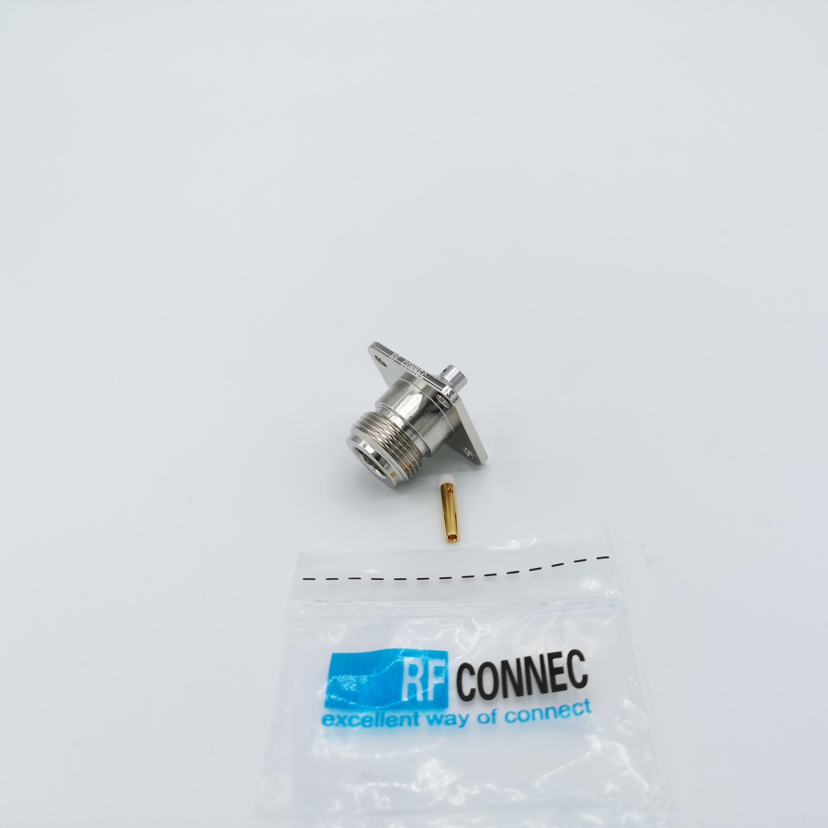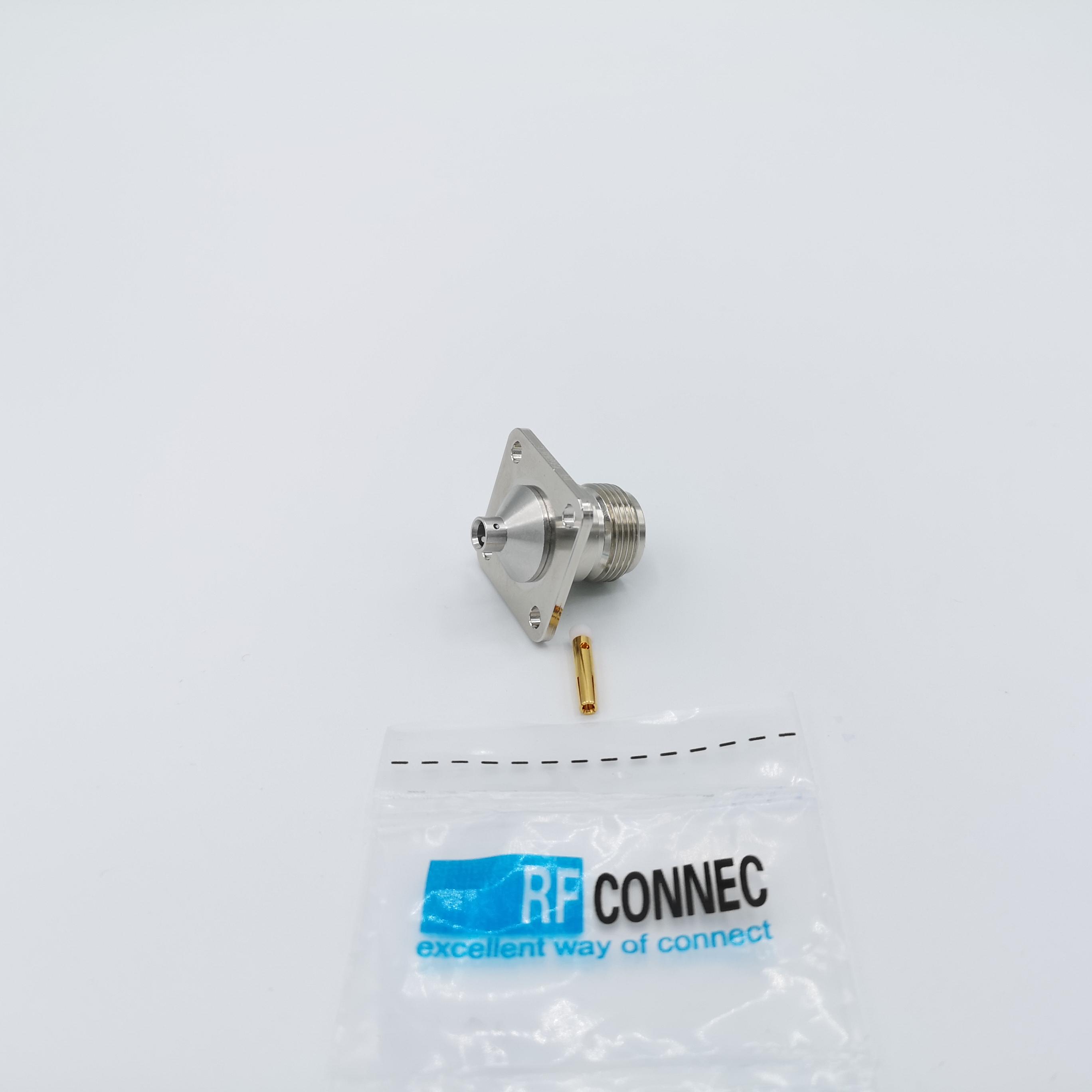 کانکتور N-TYPE مادگی سرکابلی پنلی چهار سوراخه مستقیم با مغزی(پین) استاندارد مناسب برای کابل های کوآکسیال به شرح زیر می باشد:
